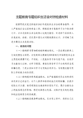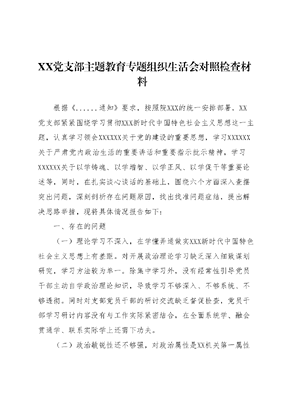 XX党支部主题教育专题组织生活会对照检查材料.docx