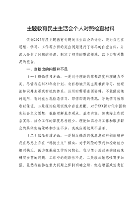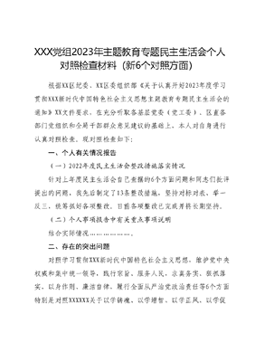 XXX党组_2023年主题教育专题民主生活会个人对照检查材料(新6个对照方面).docx