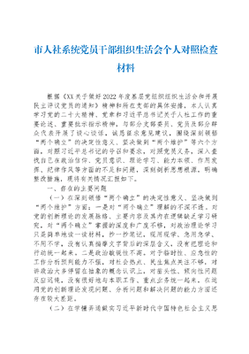 2022年市人社系统党员干部组织生活会个人对照检查材料.docx