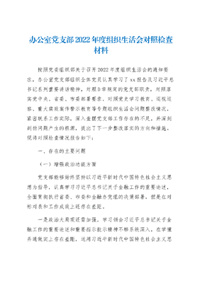 办公室党支部2022年度组织生活会对照检查材料.docx