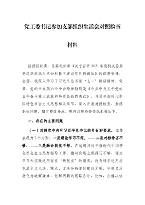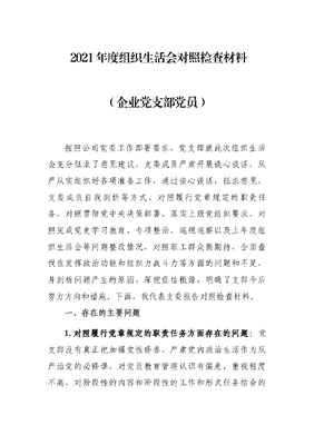 2021年度组织生活会对照检查材料(企业党支部党员).docx