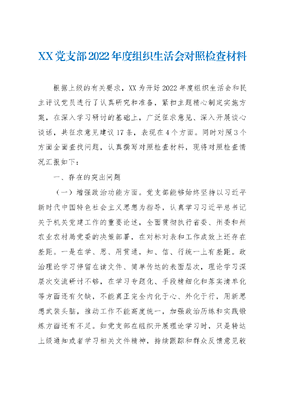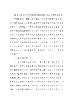 XX党支部班子2022年度组织生活会对照检查材料.docx