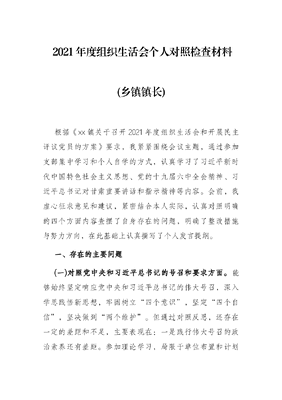 2021年度组织生活会个人对照检查材料(乡镇镇长).docx