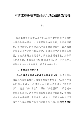 肃清流毒影响专题组织生活会剖析发言材料.docx