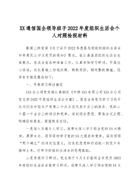 XX通信国企领导班子2022年度组织生活会个人对照检视材料.docx