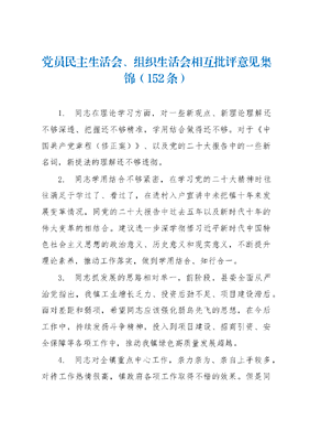 (152条)党员民主生活会、组织生活会相互批评意见集锦.docx