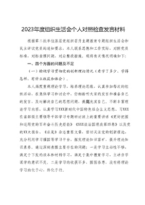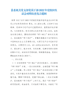 县委机关党支部党员干部2022年度组织生活会对照检查发言提纲.docx