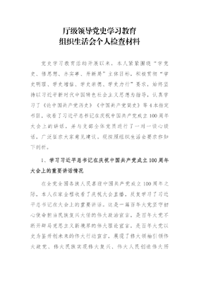 厅级领导党史学习教育组织生活会个人检查材料.docx