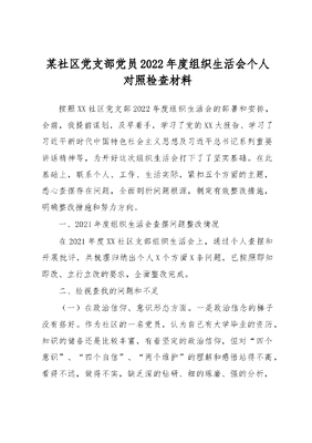 某社区党支部党员2022年度组织生活会个人对照检查材料.docx