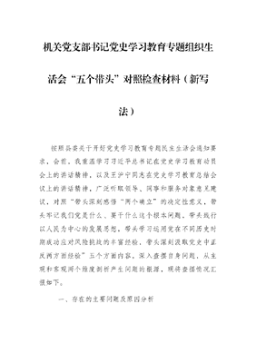 机关党支部书记党史学习教育专题组织生活会“五个带头”对照检查材料(新写法).docx