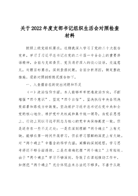 关于2022年度支部书记组织生活会对照检查材料.docx