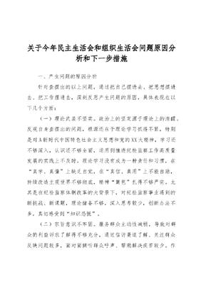 今年民主生活会和组织生活会问题原因分析和下一步措施.docx