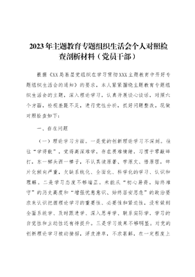 2023年主题教育专题组织生活会个人对照检查剖析材料(党员干部).docx