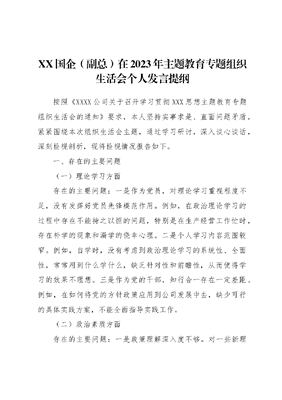 国企(副总)在2023年主题教育专题组织生活会个人发言提纲.docx