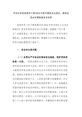 市农业农村局领导干部2024年度专题民主生活会、组织生活会对照检查发言材料.docx