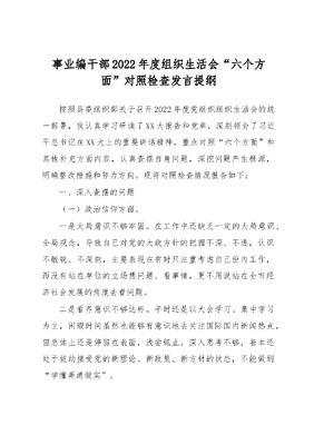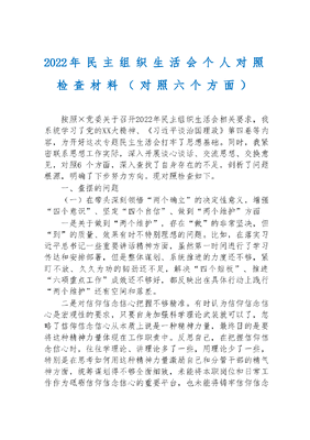 2022年民主组织生活会个人对照检查材料(对照六个方面).doc