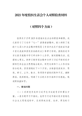 2021年度组织生活会个人对照检查材料(对照四个方面).docx