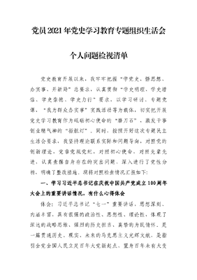 党员2021年党史学习教育专题组织生活会个人问题检视清单.docx