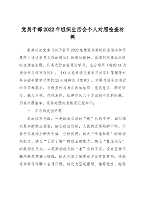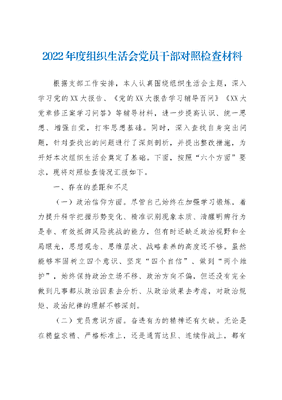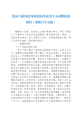 党员干部2022年度组织生活会个人对照检查材料(对照六个方面).docx