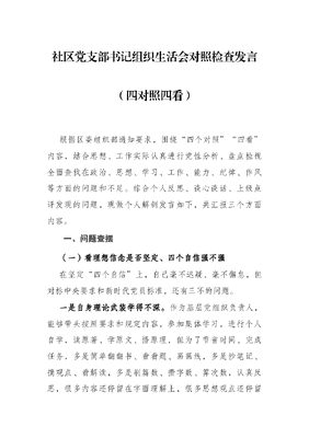 社区党支部书记组织生活会对照检查发言(四对照四看).docx