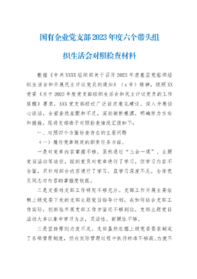 国有企业党支部2023年度六个带头组织生活会对照检查材料范文..docx
