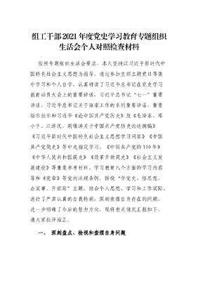 组工干部2021年度党史学习教育专题组织生活会个人对照检查材料.docx