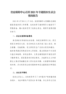 住房保障中心召开2021年专题组织生活会情况报告.docx