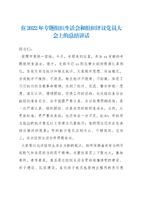 在2022年专题组织生活会和组织评议党员大会上的总结讲话.docx