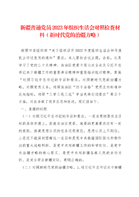 新疆普通党员2023年组织生活会对照检查材料(新时代党的治疆方略).docx