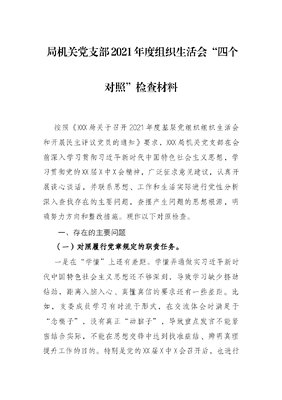 局机关党支部2021年度组织生活会“四个对照”检查材料.docx