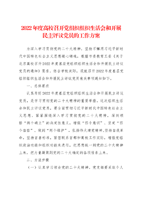 2022年度高校召开党组织组织生活会和开展民主评议党员的工作方案.docx