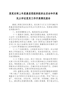 某党支部上年度基层党组织组织生活会和开展民主评议党员工作开展情况报告.docx