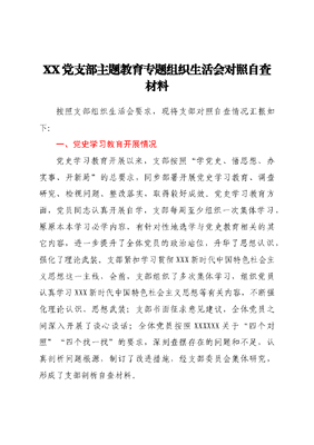 XX党支部主题教育专题组织生活会对照自查材料.doc
