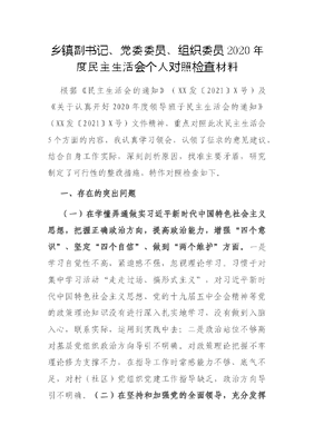 乡镇副书记、党委委员、组织委员2020年度民主生活会个人对照检查材料.docx
