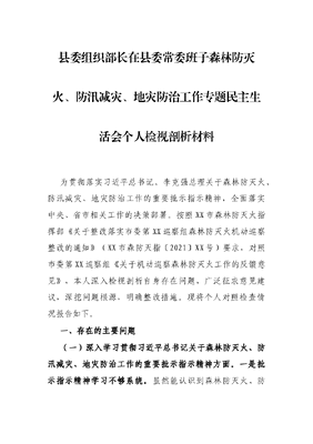 县委组织部长在县委常委班子森林防灭火、防汛减灾、地灾防治工作专题民主生活会个人检视剖析材料.docx
