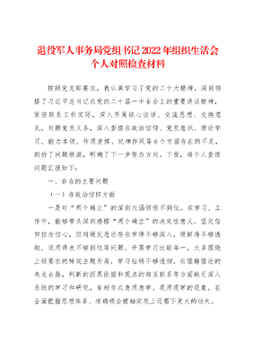 退役军人事务局党组书记2022年组织生活会个人对照检查材料.docx