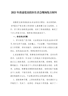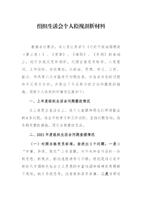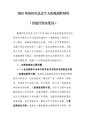 2021年组织生活会个人检视剖析材料(住建厅处室党员).docx