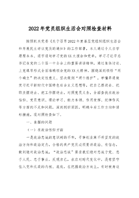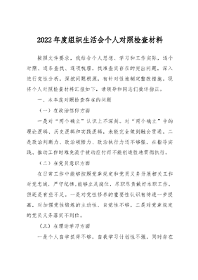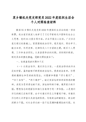 某乡镇机关党支部党员2022年度组织生活会个人对照检查材料.docx