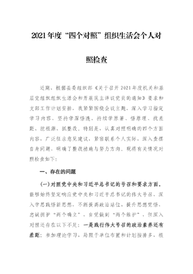 2021年度“四个对照”组织生活会个人对照检查.docx