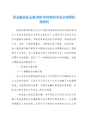 某金融办党支部2022年度组织生活会对照检查材料.docx