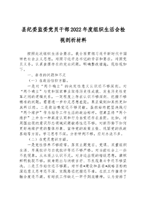 县纪委监委党员干部2022年度组织生活会检视剖析材料.docx