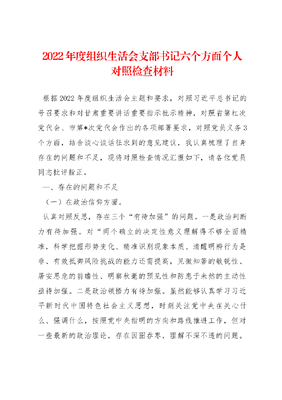 2022年度组织生活会支部书记六个方面个人对照检查材料.docx