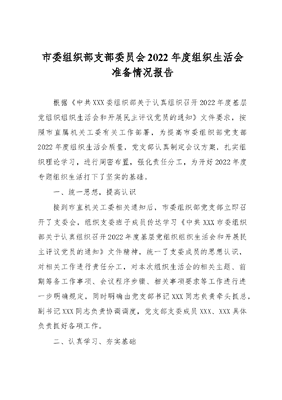 市委组织部支部委员会2022年度组织生活会准备情况报告.docx