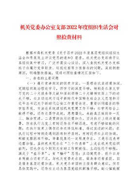 机关党委办公室支部2022年度组织生活会对照检查材料.docx