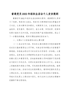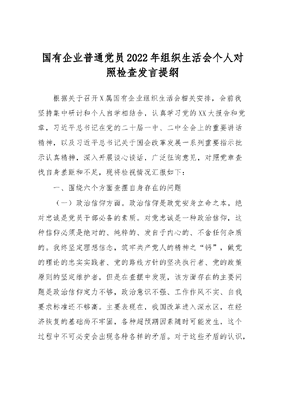 国有企业普通党员2022年组织生活会个人对照检查发言提纲.docx