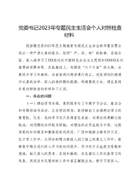 党委书记2023年专题民主生活会个人对照检查材料.docx