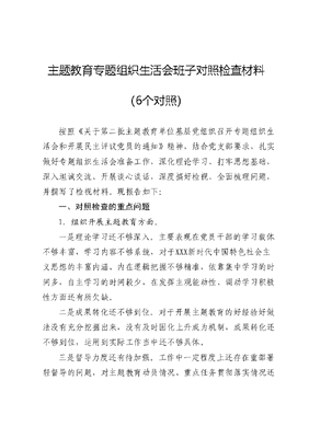 主题教育专题组织生活会班子对照检查材料(6个对照).docx