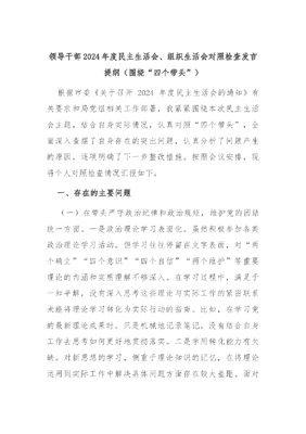 领导干部2024年度民主生活会、组织生活会对照检查发言提纲(围绕“四个带头”).docx