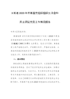 X街道2020年度基层党组织组织生活会和民主评议党员工作情况报告.docx