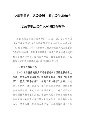 乡镇副书记、党委委员、组织委员2020年度民主生活会个人对照检查材料.docx